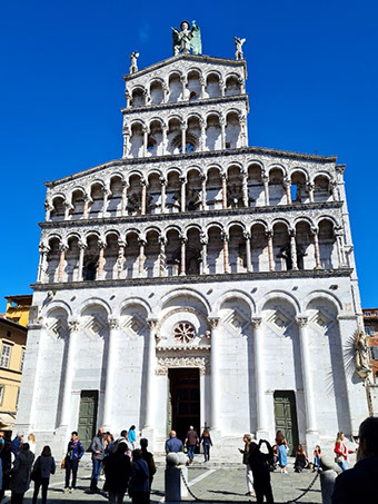LUCCA accoglie gli ospiti tra i vicoli medioevali, nella vivace atmosfera di Piazza Anfiteatro, dove sorgeva l'antica arena romana, e nella Piazza San Michele con la sua bellissima chiesa. Poi dalla ottocentesca Piazza Napoleone, la principale piazza di Lucca, si può proseguire per il Duomo di San Martino, dove e' conservato il prezioso crocifisso del volto santo e il monumento funebre a Ilaria del Carretto di Jacopo della Quercia, e per finire il giro della città si arriva alla romanica basilica di San Frediano. Domenica : non si possono non apprezzare le “mura di Lucca”: esempio di fortificazioni rinascimentali ben conservate, con i suoi sotterranei percorribili ancora oggi,  ma anche "promenade" unica al mondo, parco urbano e punto di vista privilegiato a circa 12 metri di altezza.